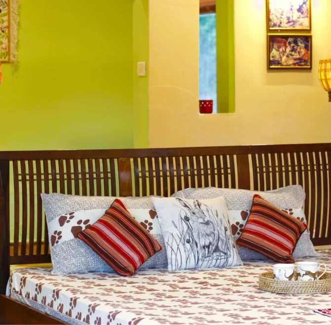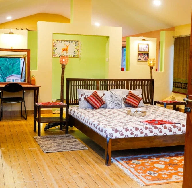 A serene forest-facing villa crafted from earth and silence, where comfort feels organic. Here, nature flows through every space — calm, grounded, and beautifully alive.