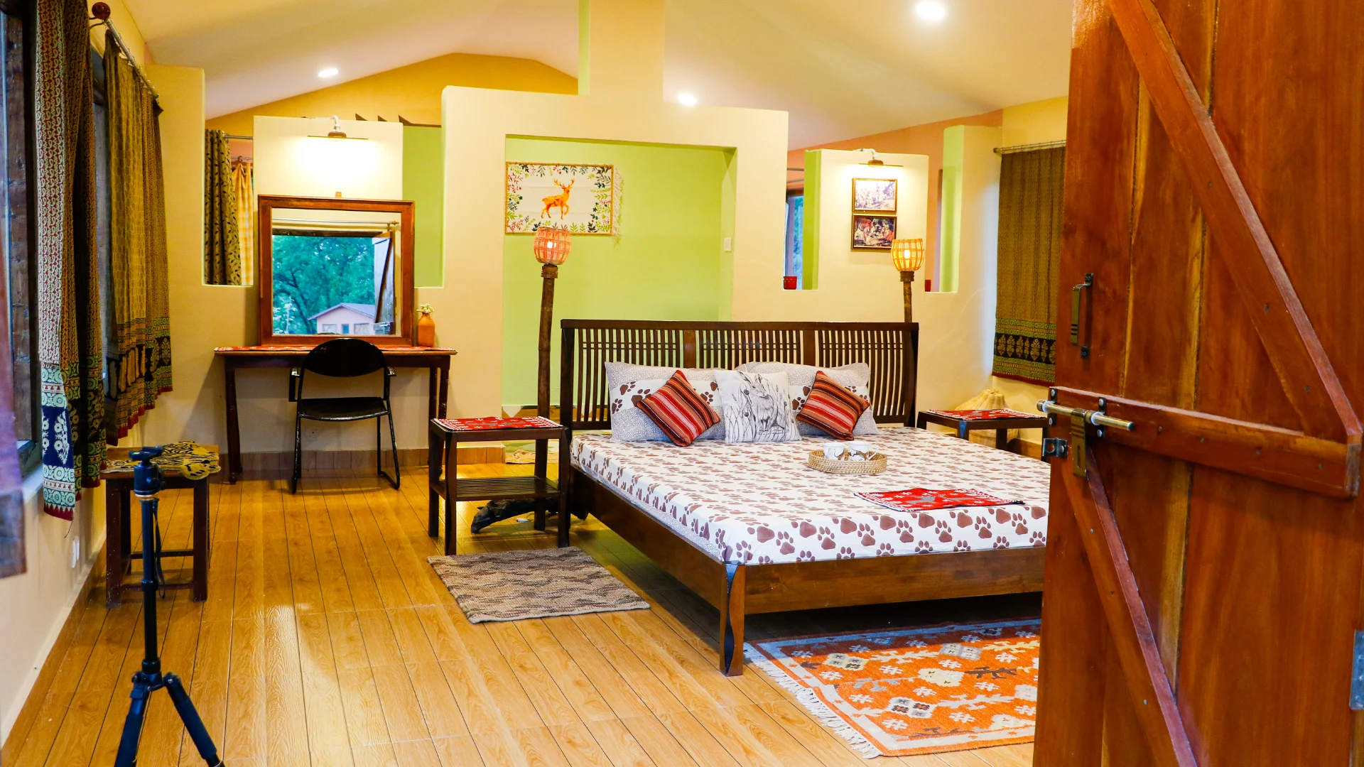 Unwind in your spacious bedroom, enjoy a soothing bath in the elegant bathtub, or relax on your private sit-out surrounded by the tranquil sounds of the wild. With every modern comfort—premium bedding, Wi-Fi access, and personalized service—your stay promises unmatched serenity and exclusivity.